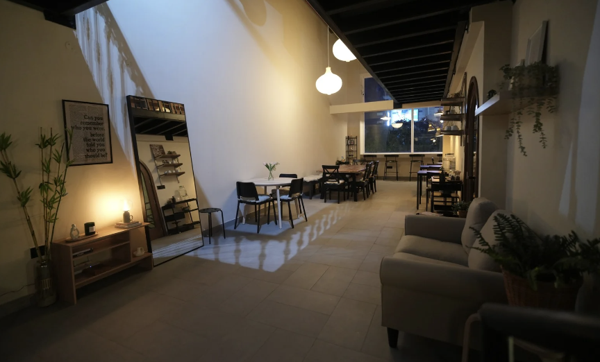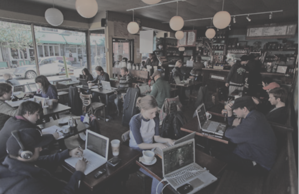 Café space for socializing without disrupting other's work